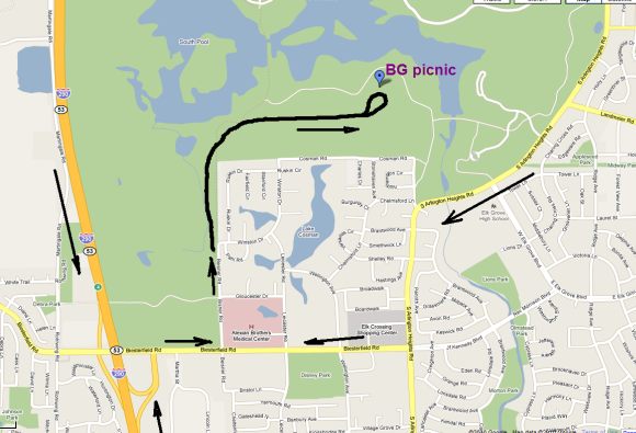 Може да ползвате за по лесно и тази карта на Гугъл и Яху (линк) ( завийте на ляво по алеята в парка)