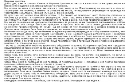 Както е известно, на 25 октомври ще се проведе национален референдум за електронното гласуване. На този референдум, включително благодарение на усилията на активни българи в чужбина и техни съмишленици (вж. тук), за първи път българските граждани извън страната ще имат реална възможност да участват. Участието им стана възможно след отпадането на един текст в чл. 9 от Закона за прякото участие на гражданите в държавната власт и местното управление /ЗПУГДВМУ/, в който се казваше, че национален референдум се провежда само на територията на страната. Тези промени влязоха в сила през м. юли т.г.