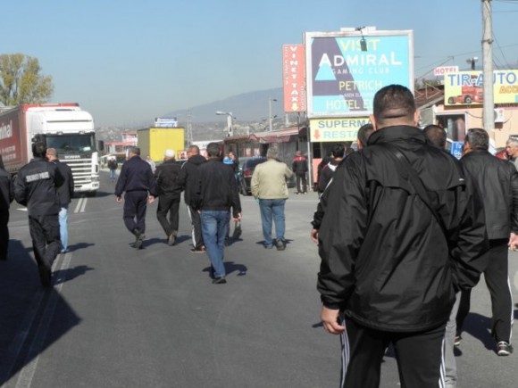 Над 100 цивилни и униформени полицаи блокираха за около 20 минути пътя за ГКПП Кулата на около сто метра преди гишето за пътни такси на пункта. Те протестираха, въпреки че им бе предадено, че придобивките им се запазват и новите условия ще важат само за новопостъпили служители. Те попитаха това има ли го черно на бяло, след което казаха, че не блокират, а се разхождат. Движението и в двете посоки бе спряно и се оформиха опашки от автомобили.