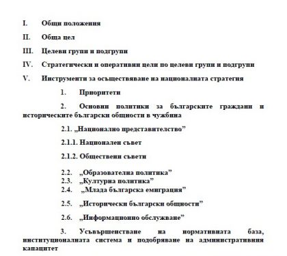 (Повече за споменатата Национална стратетия може да се прочете ТУК, ТУК и ТУК. Съдържанието на Стратегията – National_Strategy_for_Bulgarian_Citizens_and_Historical_Bulgarian_communities_worldwide)