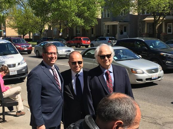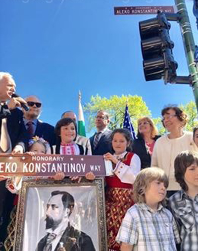 Както нашето издание вече информира (вж. тук, тук), на името на незабравимия българския писател и общественик Алеко Константинов бе кръстено кръстовище в Чикаго. След като неотдавна Кметството на града одобри предложението на общинския съветник Джон Арина за именуването на североизточния ъгъл на West Irving Park Road и North Hamlin Avenue на името на Алеко, вчера се състоя и официалната церемония с откриването на табелата „ALEKO KONSTANTINOV way“.