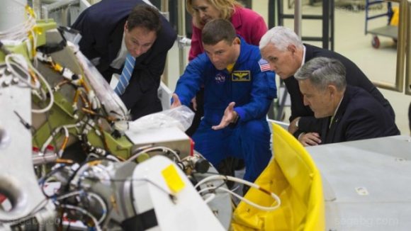 Наскоро назначен за ръководител на Националния космически съвет, който е консултативен орган, Майк Пенс посети Космическия център „Кенеди” близо до Кейп Канаверал във Флорида и разгледа космическите капсули, които се строят от частни компании за сметка на НАСА. „Страната ни ще се върне на Луната и ще поставим следите от американски ботуши на повърхността на Марс“, каза Майк Пенс пред около 800 служители на НАСА, космически експерти и подизпълнители. Сред присъстващите бе и Бъз Олдрин, вторият човек, стъпил на Луната след Нийл Армстронг.