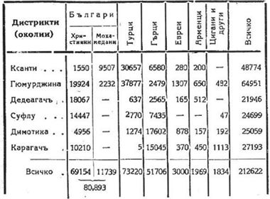 Както е известно, преди да бъде присъединена към Гърция през 1920 г., откъснатата от България Западна Тракия почти една година е владение на Антантата, която изгражда своя администрация начело с френския генерал Шарпи. При направеното преброяване на населението, в района са регистрирани 80893 българи, като от тях 11739 са мюсюлмани.