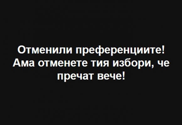 …През последните дни мафията окончателно лиши гражданите от някакъв избор и дори имитацията на избори, която се предлагаше, бе отменена и вече изборите са само формалност. През последните дни, месеци и години, и стотиците скандали и гейтове свалиха маските и разкриха престъпната същност на управниците ни. ДжиПи-гейт, ДДС-гейт, ЦУМ-гейт, Янева-гейт, „Ало, Ваньо“, „Ти си ги избра“, Кръстник-гейт, Новичок-гейт, Суджук-гейт са само много малка част.
