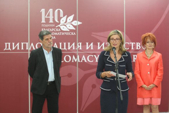 Вицепремиерът и външен министър Екатерина Захариева откри на 19 септември в София изложбата „ДИПЛОМАЦИЯ И ИЗКУСТВО“, представяща художествени произведения от колекцията на МВнР, съобщи пресцентърът на Външно министерство. Творбите напуснаха посолства и кабинети в министерството, за да бъдат показани пред публика в галерия „Академия“ на НХА, по повод 140-годишнината на МВнР.