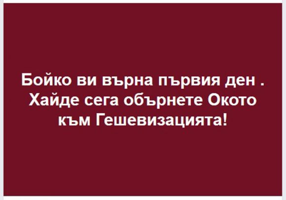 „Избраният за главен прокурор Иван Гешев казал в понеделник в Русе, че няма да се извинява на члена на Висшия съдебен съвет (ВСС) Атанаска Дишева, на която беше заявил в кулоарите на съвета, че й предстояла блестяща политическа кариера на общински съветник. Над 100 съдии поискаха освен извинение и дисциплинарна процедура срещу Гешев заради поведението му спрямо опонент на процедурата, по която той като единствен кандидат бе повторно избран. Ако се спирам на най-новия детайл от публичното поведение на Гешев, то е защото той потвърждава неговото колосално себеусещане за непогрешимост, което го кара да вижда враговете – и своите, и на държавата, само в опонентите и да отвръща на техните доводи с агресивно-грубиянска словесност и без никакви аргументи по същество. Гешев е предварително разделил обществото на два лагера – обвиняеми и необвиняеми, в чието определяне той лично до голяма степен е участвал и въз основа на това е определил кой има право дори да му задава въпроси. И всеки, който му опонира, е вкарван автоматично в лагера на лошите, които заслужават ако не директно употребата на Наказателния кодекс, то заклеймяване чрез медиите на необвиняемия Делян Пеевски.“ – из публикация на в. „Дневник“.