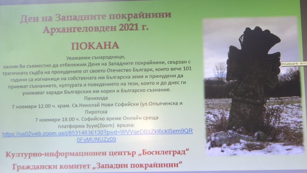 Във връзка с Деня на Западните покрайнини, Културно-информационен център „Босилеград“ и Граждански комитет „Западни покрайнини“ организират на 7 ноември, от 12 часа българско време, панихида в църквата „Св. Николай Нови Софийски“ (на ъгъла на ул. „Опълченска“ и ул. „Пиротска“ в София).