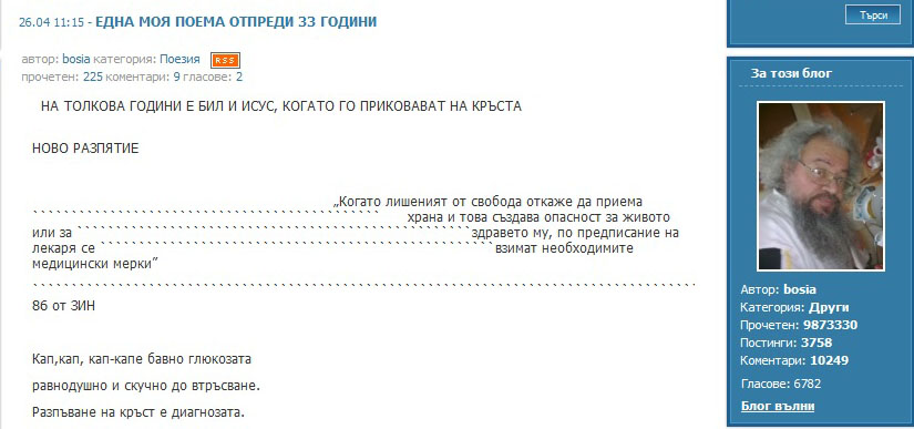 От блога на Николай Колев – Босия, който вчера навърши 71 години.
