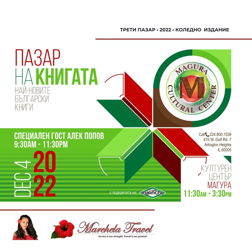 Първият пазар на българската книга се проведе в началото на декември миналата година, организаторите бяха вдъхновени от дългогодишната лична инициатива на писателя Георги Господинов “Подари книга за Коледа”. Известният писател и приятел на Център “Магура” дори изпрати видео-поздрав за читателите в Чикаго.