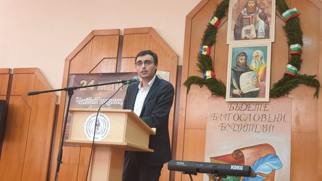 Този дух на буквите помага на нас да възраждаме това, което е било в миналото. Затова неслучайно ние вече втора поредна година извършваме тържествено шествие на младото поколение в центъра на българите в Република Молдова – гр. Тараклия. Нашите деца, с национални знамена, а и портрети на светите братя Кирил и Методий, тръгнаха от църквата Св. Георги Победоносец в посока към Държавния университет „Григори Цамблак”, така само те символично повториха богоугодния път на Солунските братя, които 1170 години преди са тръгнали от Църквата като духовници с мисионерска дейност и са завършили своя път като изявени просветители.