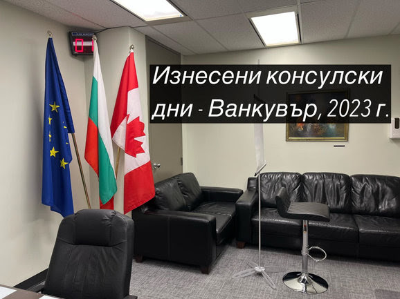 Генералното консулство на Р България в Торонто, съвместно с Българо-канадското дружество в Британска Колумбия (Bulgarian-Canadian Society of BC), организира изнесени консулски дни в гр. Ванкувър, Британска Колумбия – съобщават от българското Генерално консулство.