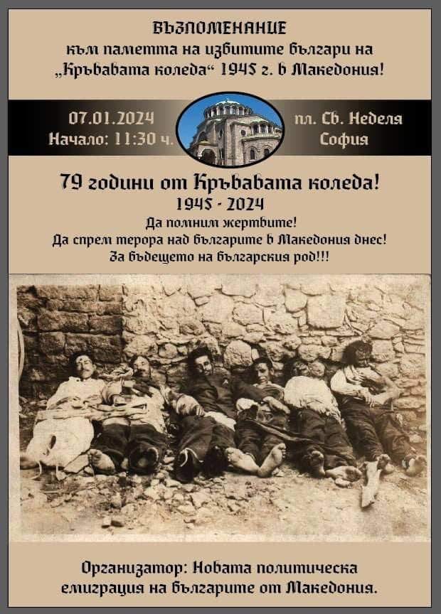 Какъв по-добър повод от този да си спомним подвига на първите нови масови страдалци за българщината, каквито са жертвите на кървавата Коледа по стар стил на 7 януари 1945 г. в днешна Северна Македония. По този начин ще подкрепим и съвременната борба за човешки права на българите в Северна Македония, които само желаят да бъдат равноправни с останалите етнически групи и да могат да съхраняват своето неподправено минало.