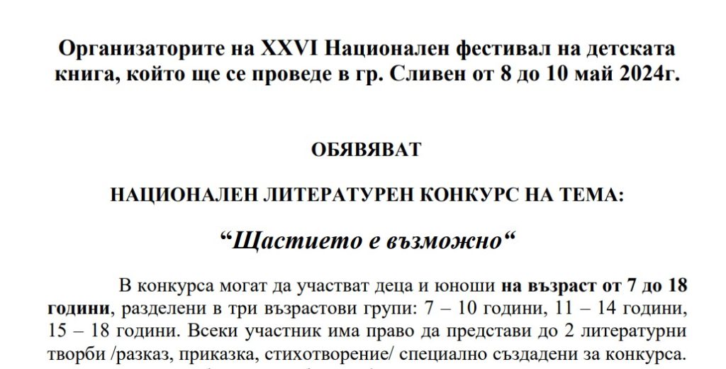 НАЦИОНАЛЕН ЛИТЕРАТУРЕН КОНКУРС НА ТЕМА: