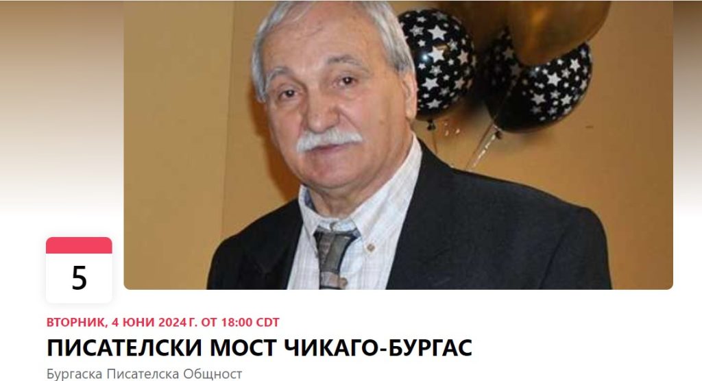 Срещата ще се проведе на 4 юни т.г. в Дома на писателя в Бургас, с подкрепата на Творчески съюз „Творци без граници“.