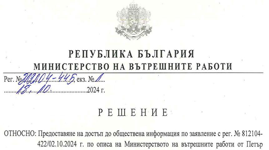 От своя страна МВР ни изпратиха също отговор по изпратеното заявление по ЗДОИ. Той е за регистрираните престъпления в периода от 01.01.2007 г. до 17.10.2024 г., разпределени по текстове от Наказателния кодекс, които са съответно по чл. 167, ал. 2 – 5 от НК (за купуването за гласове и др.) и с престъпления по чл. 169 от НК (за манипулиране на изборните резултати от членове на избирателни комисии).