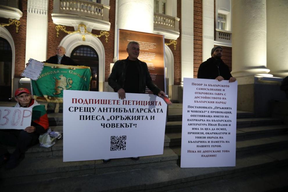 Плакати от протеста снощи пред Народния театър в София. Снимка: Георги Димитров, dariknews.bg