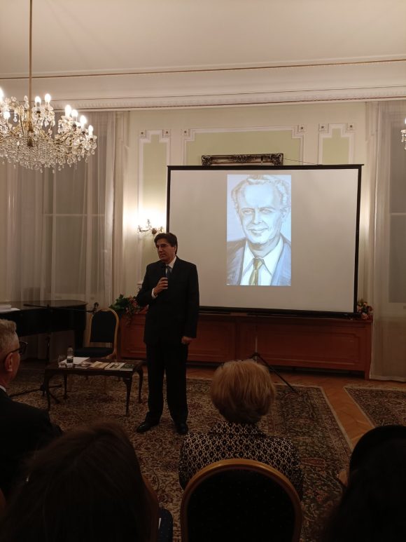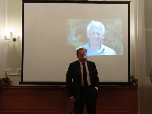 Думата бе дадена за приветствено слово на Н. Пр. г-н Тихомир Стойчев. Той поздрави присъстващите, благодари на официалните ни гости и произнесе кратко слово за личността на Иван Станчов и неговата значима роля за България като дипломат, филантроп, благороден дарител и изключителен човек.