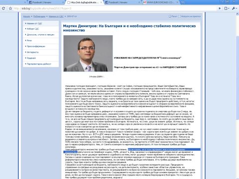 Доказателство за объркването в БСП намираме във вътрешните разборки в партията, а в текста на речта на Мартин Димитров от сайта на СДС четем :