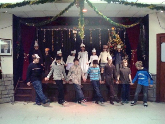 Тази вечер Дядо Коледа отново пристигна тук за да види и чуе с какво ще го изненадат децата.Празникът започна с любимата стара детска песен за Шаро и първия сняг. След това малките ученици представиха ”Коледа в гората”, подготвени от г-жа Нели Терзийска. Зайо, Мечо, Рунтавелка , Гризанка и Снежинките развеселиха гостите със своите приключения и тропнаха едно Ежово хорце! Спонтанно, от публиката изтича Алекс да поздрави Дядо Коледа. Последваха го и други малки гости с песни и стихчета. След това големите ученици,подготвени от г-жа Румяна Станкова, представиха драматизация по разказа на Константин Константинов „Гост”.