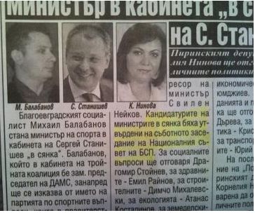 М. Балабанов стана спортен министър в кабинета „в сянка“ на С. Станишев