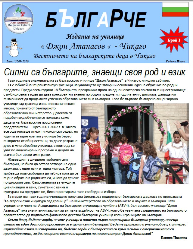 Поздравления за идеята! Чудесна е! Подкрепям ви и винаги ще съм с вас! Мисля си, че не е нужно да бъде отпечатван вестника, съвременните технологии стават все по-привлекателни и сигурна съм, че за всеки ще е по-лесно и достъпно да чете онлайн \"БЪЛГАРЧЕ\" – Първото Детско Българско вестниче в Чикаго, а може би и първо по рода си извън България! На добър час!