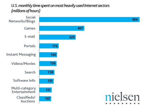 „Въпреки почти неограниченият характер на това, което можете да правите в интернет, 40% от онлайн времето в САЩ, е употребено само за три дейности – социални мрежи, игри и електронна поща. Всички останали сектори се борят за останалия пай, който все повече намалява“ – заключава Дейв Мартин, анализатор в Нилсен.