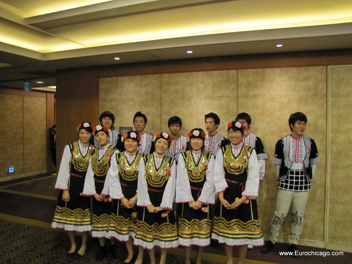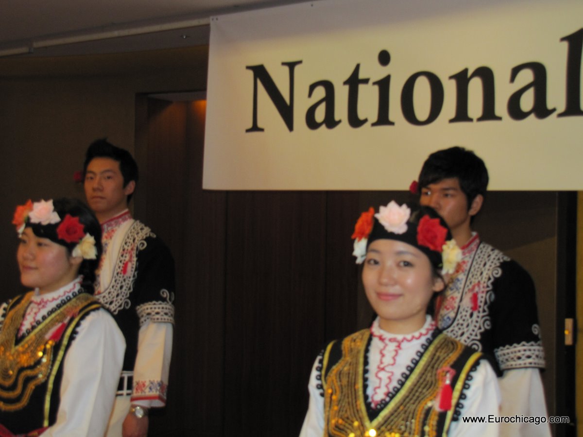 Изучаващи български език корейски студенти от университета „Ханкук”, облечени в български народни носии, поздравиха гостите с песента „Една българска роза” и български народни танци.