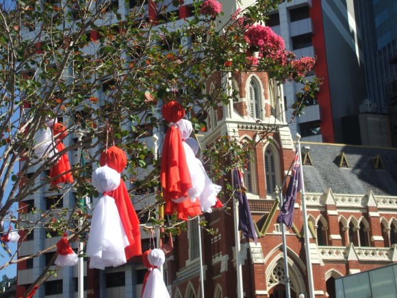 След българите от Бризбън – столицата на щат Куинсланд, най-голямата търсачка Гугъл също поздрави България и всички държави, в които се почита празника Баба Марта, изписвайки своето традиционно лого на главната си страница с преплетена бяла и червена връв, наподобяваща мартеница ( вижда се на адрес www.Google.Bg ).