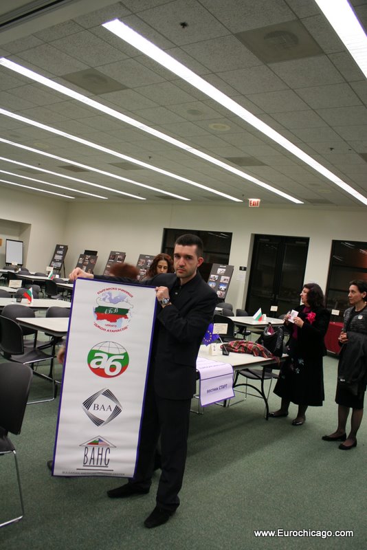 В съседните зали активно течеше подготовката за започващия днес ПЪРВИ ФОРУМ НА БЪЛГАРСКИТЕ УЧИЛИЩА И ПОДКРЕПЯЩИТЕ ГИ ОРГАНИЗАЦИИ В САЩ. На снимките по-долу са показани залата и подготвените изложби.