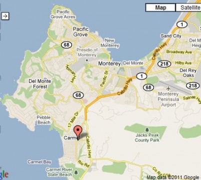 Кармел е разположен на южната страна на полуостров Монтерей. На север е големият град Монтерей с известната улица Канъри Роу, описвана толкова добре от Джон Стайнбек. Той е живял в Салинас, който е наблизо и е прекарвал много от своето време в тази околност. По скоро в баровете, в които се разказвали интересни истории. Сега много от оригиналните сгради са запазени и са в добра форма. Има добри хотели, ресторанти и барове, както и изключителния аквариум, където може да се види голяма част от обитателите на океана в естествената им среда, в грамадни стъклени резервоари високи колкото два или три етажа. В аквариума и извън него в залива могат да се видят моржове и отъри, които отварят с чукане хванатите големи миди и ги и ядат. В пристанището предлагат ловене на риба в окена. С рибарско корабче и зонар се намират стадата от рибите, после по високоговорителя се казва на каква дълбочина да се пуснат въдиците. Всички въодушевено въртят машинките и макарите, а щастливците предават в кухнята хванатата риба – когато напускаш рибарското корабче я получаваш опакована и изчистена за готвене. Просто рай за рибарите. А тези, които нищо не са хванали, я намират в многото ресторанти в подходящи компании и напитки.