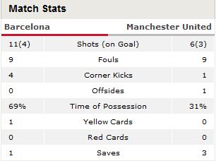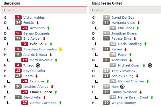 Преди мача треньорът на Манчестър Юнайтед Алекс Фъргюсън посочи, че ще пусне своите млади играчи, ако Барселона направи същото и зрителите останахме с впечатлението, че си изпълни обещанието. Най-добър на терена бе Нани, а Руни направи дежурните си пропуски.