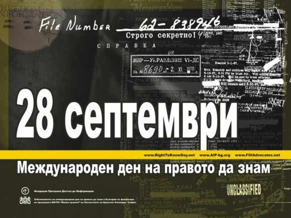1. За девети път Програма Достъп до Информация връчва годишни награди за принос в областта на свободата на информация по случай Международния ден на правото да знам. Тази година церемонията ще бъде открита с песента „Дишай“, посветена на празника.