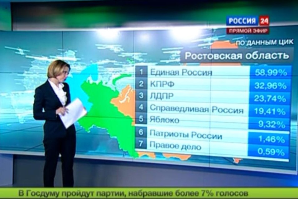 Ако се сумират процентите на всички партии то процентът ще е не 100%, а 146,47%. Даже водещата на прякото телевизионно предаване от ЦИК остана потресена. Стотици са сигналите за нарушения в цялата страна, но медиите и сайтовете, които сигнализират за тях бяха хакнати. Viva Putin!