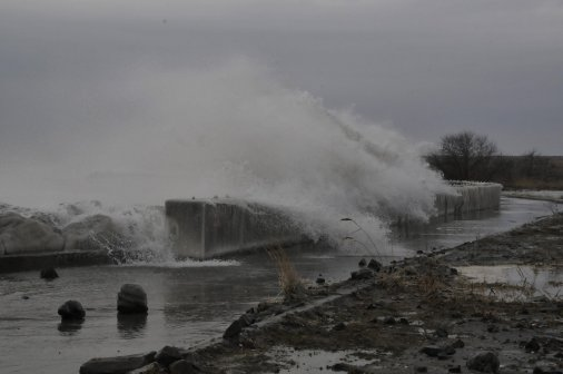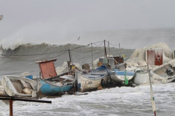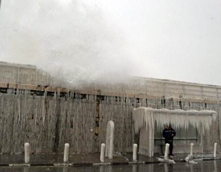 Тежката зима доведе до бедствие и по Черноморието, след като днес големи вълни заляха брега, наводниха къщи в Поморие и разрушиха пристанищни съоръжения и лодки по цялото българско крайбрежие.