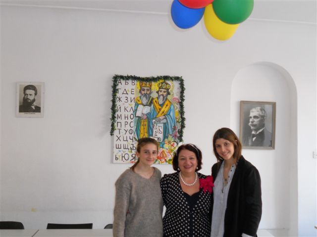 Идеята ми се стори чудесна, снимахме се с двете чаровни девойки в нашата класна стая пред портретите на светите братя Кирил и Методи, на Ботев и Левски.
