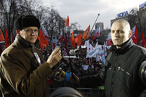 К моменту начала митинга сюда прибыли также лидер „Левого фронта“ Сергей Удальцов, политик Борис Немцов. Последний заявил журналистам, что собравшихся будут призывать к ненасильственной борьбе: „Будет использован весь арсенал легальных средств“.