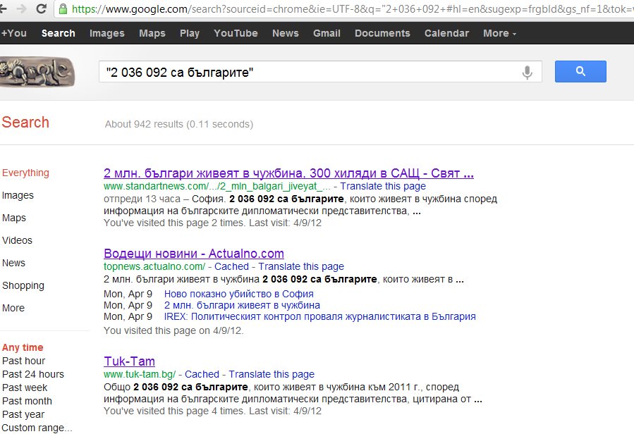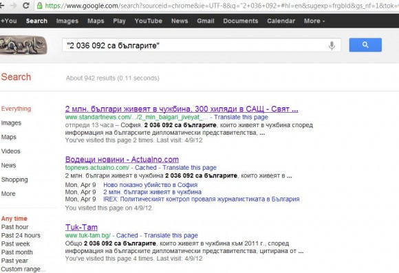 Гугъл подсказва, че за около едно денонощие тази цифра е била цитирана в различни издания – 942 пъти .