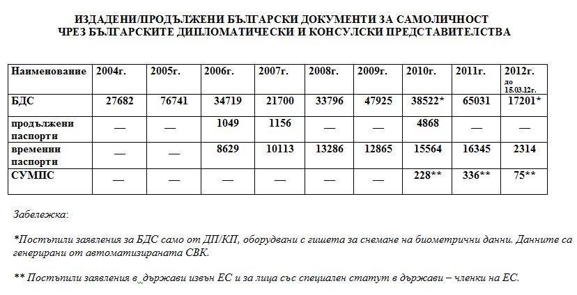 Преди два дни Обществените съвети на българите в чужбина и Eurochicago.com публикуваха данни на МВнР изискани по Закона за достъп до обществена информация, които показват, че броят на българските граждани в чужбина е над 2,000,000 (линк). Днес предоставяме нова информация за броя на издадените български документи за самоличност в дипломатическите и консулските ни представителства по света за последните почти 10 години до средата на миналия месец.