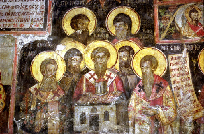 Стенопис от 1744 г. от главния храм на манастира в Арденица (днешна Албания). Храмът е изграден върху основите на черквата „Св. Троица“, строена с ктиторството на св. цар Борис Покръстител. Изписан е от братята Константин и Анастас Зограф от Корча. Фото: Николай Трейман