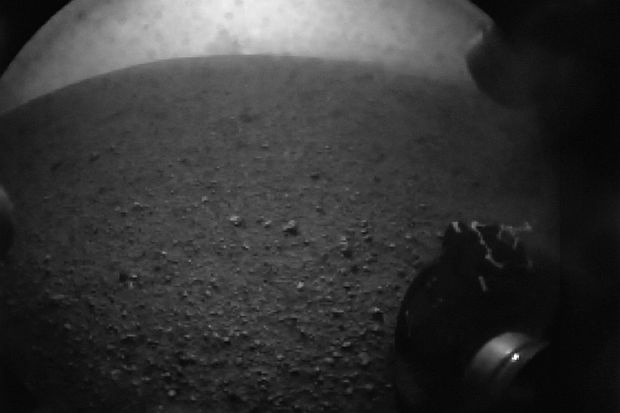 Марсоходът Curiosity, който успешно кацна в района на кратер „Гейл“ на Марс, вече предаде първите снимки.