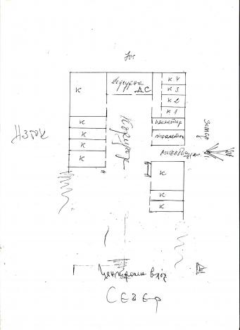 Схема на килиите на ДС в сградата – убийствата са ставали или в изолатора /малката стая до тоалетната/ или в стаята на дежурния по ДС, а побоищата и изтезанията – навсякъде.