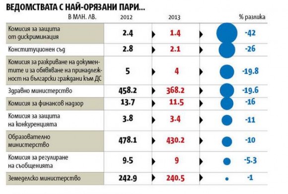 Намален бюджет (за здраве и образование): МЗ -19.6%, МОН – 10%,