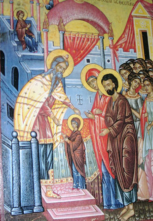 Според преданието на този ден се случило паметно събитие. Света Богородица, която била обречена на Бога от родителите си още преди рождението си, като навършила три годинки, била заведена в Йерусалимския храм. Със запалени свещи всички близки я съпроводили през града до храма. Светата Дева била поставена на първото стъпало и за почуда на всички, неподдържана от никого, се изкачила свободно по 15-те стъпала и се спряла на най-горното. Първосвещеник Захария – баща на св. Йоан Кръстител – я посрещнал, благославяйки я. Когато достигнала възрастта, на която младите възпитанички на храма трябвало да се върнат в света и да се омъжат, тя била „дадена“ на престарелия си родственик Йосиф, който оттук нататък трябвало да бди над нея.
