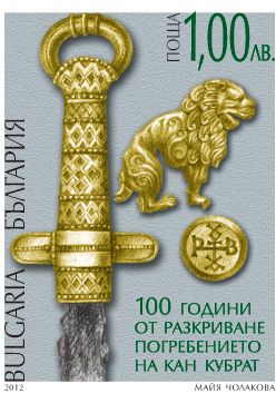 Българското Министерството на транспорта, информационните технологии и съобщенията е приело предложението на Евгения Димитрова, член на Международния организационен комитет за честването на 100-жодишнината от разкриването на погребението на кан Кубрат*, да се отпечата марка, посветена на този юбилей.