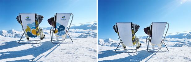 Стандартно в практиката за демонстрирането на конкретни приложения на лога в рекламните агенции се използват готови снимки, чиято цел е единствено да се демонстрират различните възможни приложения на знаците. За тези приложения се използват снимки, показващи конкретни продукти – чанта, топка, бутилка, автобус, шезлонг и т.н. Тяхната цел не е да показват пейзажи или конкретни места. Това не са рекламни, а презентационни визии, чиято цел е да се представят логата в естествена среда и да демонстрират възможностите за техните приложения. Всички използвани снимки са с уредени права.
