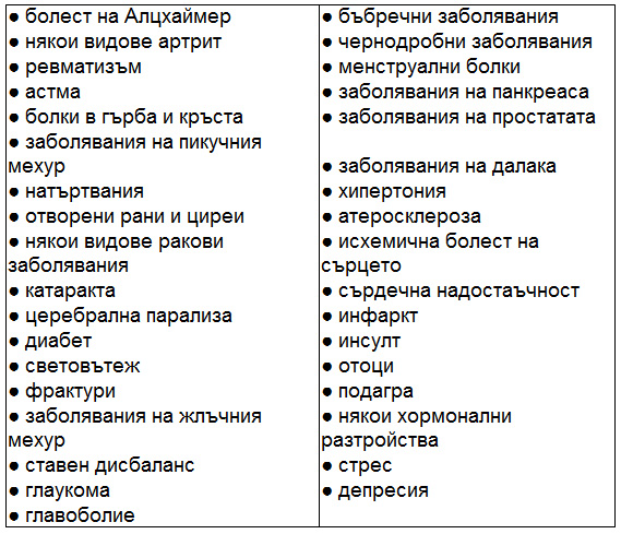 Болестните състояния, при които се наблюдава положителна реакция при прилагане на магнитна терапия, са: