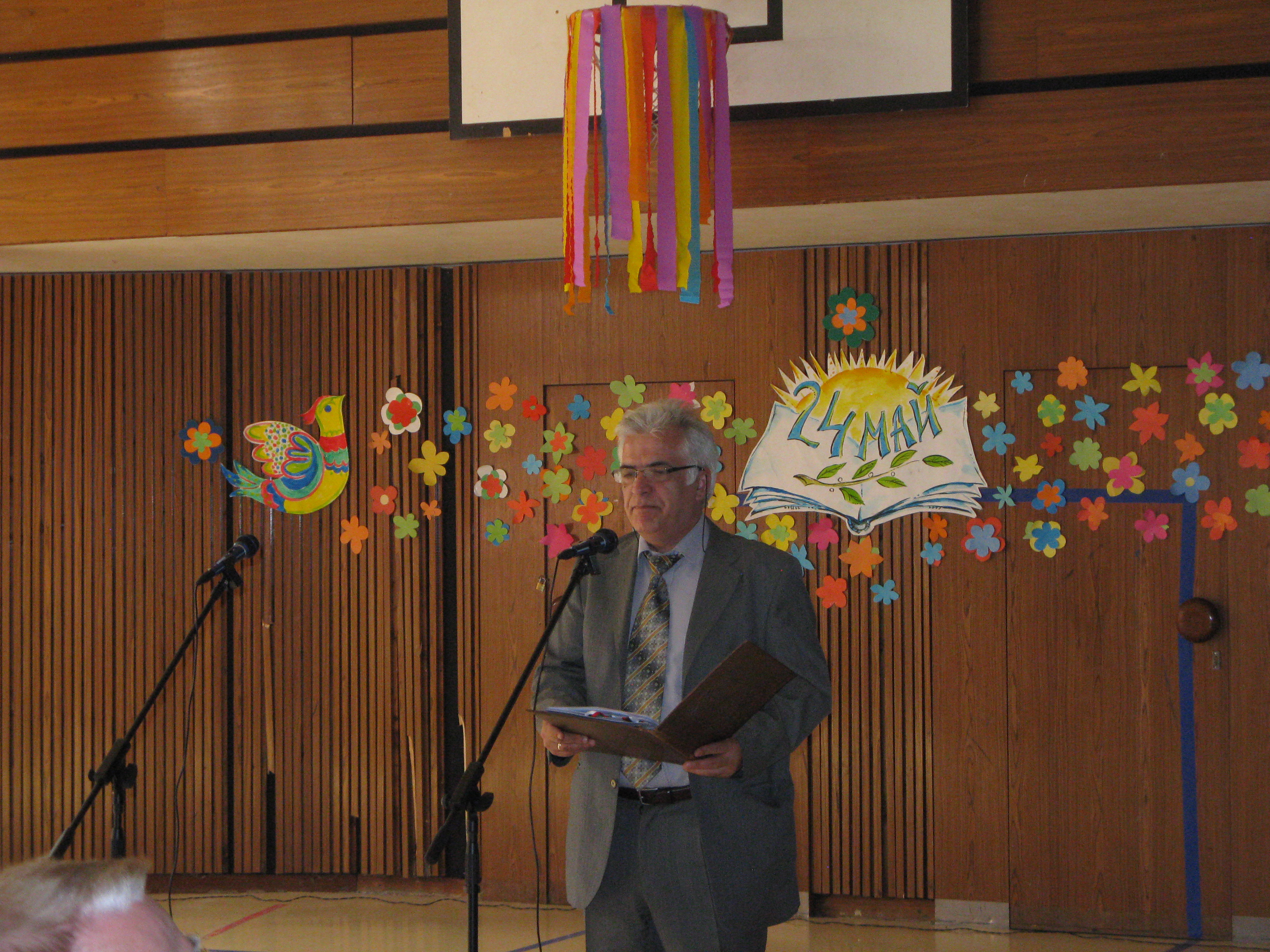 Той връчи грамоти и награди на изявени през учебната година ученици – Маргарита Синапова от 7-ми клас, Емилиян Димов от 6-ти клас и на абитуриентите Тони Иванова, Диана Георгиева, Дарин Атанасов и Петър Арнаудов.