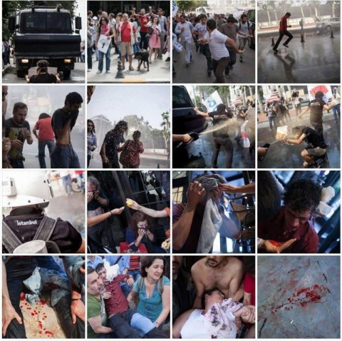 След серия мирни демонстрации за запазване на зелените площи в центъра на Истанбул, където властите планират изграждането на голям търговски център, турската полиция безмилостно нападна демонстрантите със сълзотворен газ и водни оръдия, целейки лицата и телата на протестиращите. Десетки демонстранти са хоспитализирани, а достъпа до парка е забранен, без никакво правно основание за това. Турските медии, свързани с властта и политическите партии, прикриват информацията за инцидентите. Информационните агенции, блокират потока от новини.