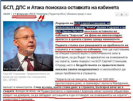 17.02.2013 г. – БСП, ДПС и Атака поискаха оставката на кабинета