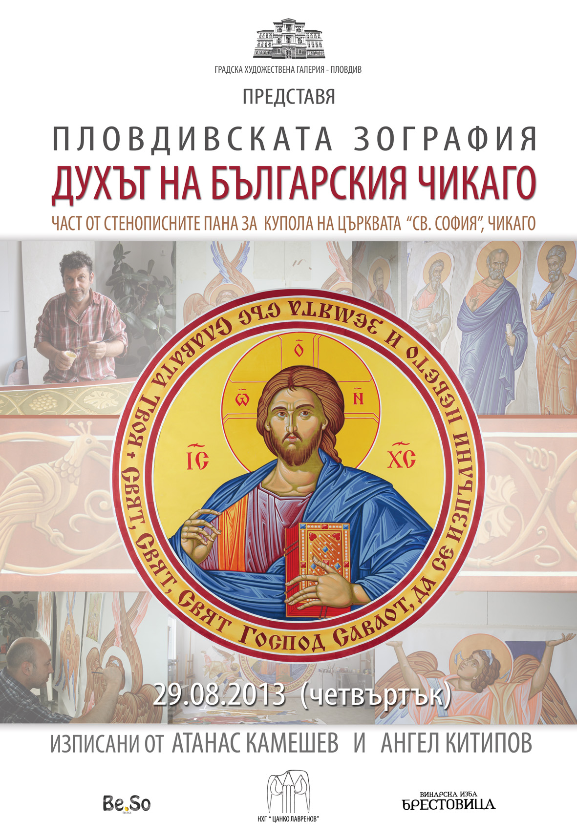 На 29 август т.г., четвъртък, в Градската художествена галерия в Пловдив ще може да се види изложба на част от стенописните пана за купола на българската черква „Св. София“ в Чикаго. Те са направени от Атанас Камешев и Ангел Китипов, дългогодишни преподаватели в Национална художествена гимназия „Цанко Лавренов“ в Града на тепетата.